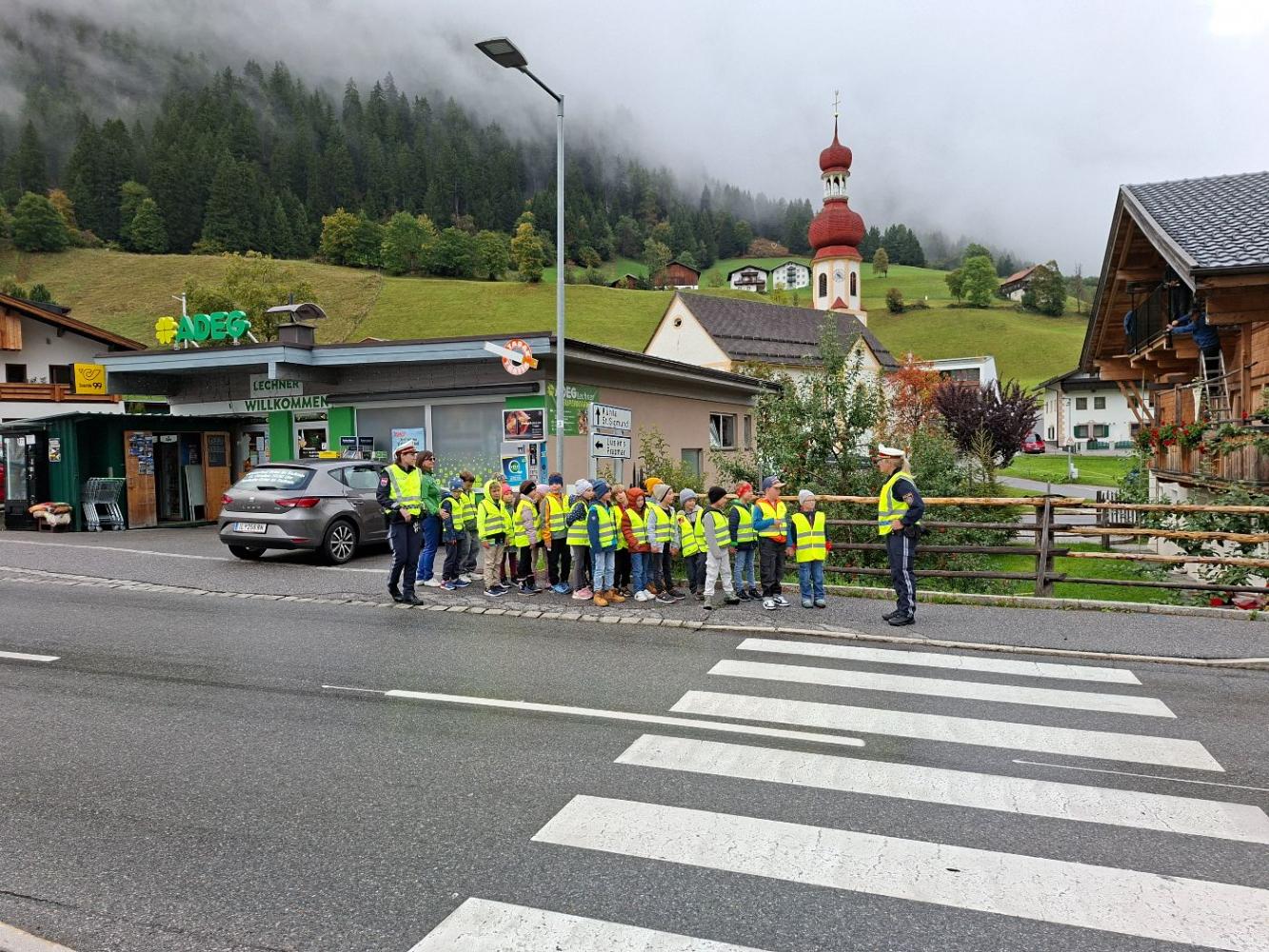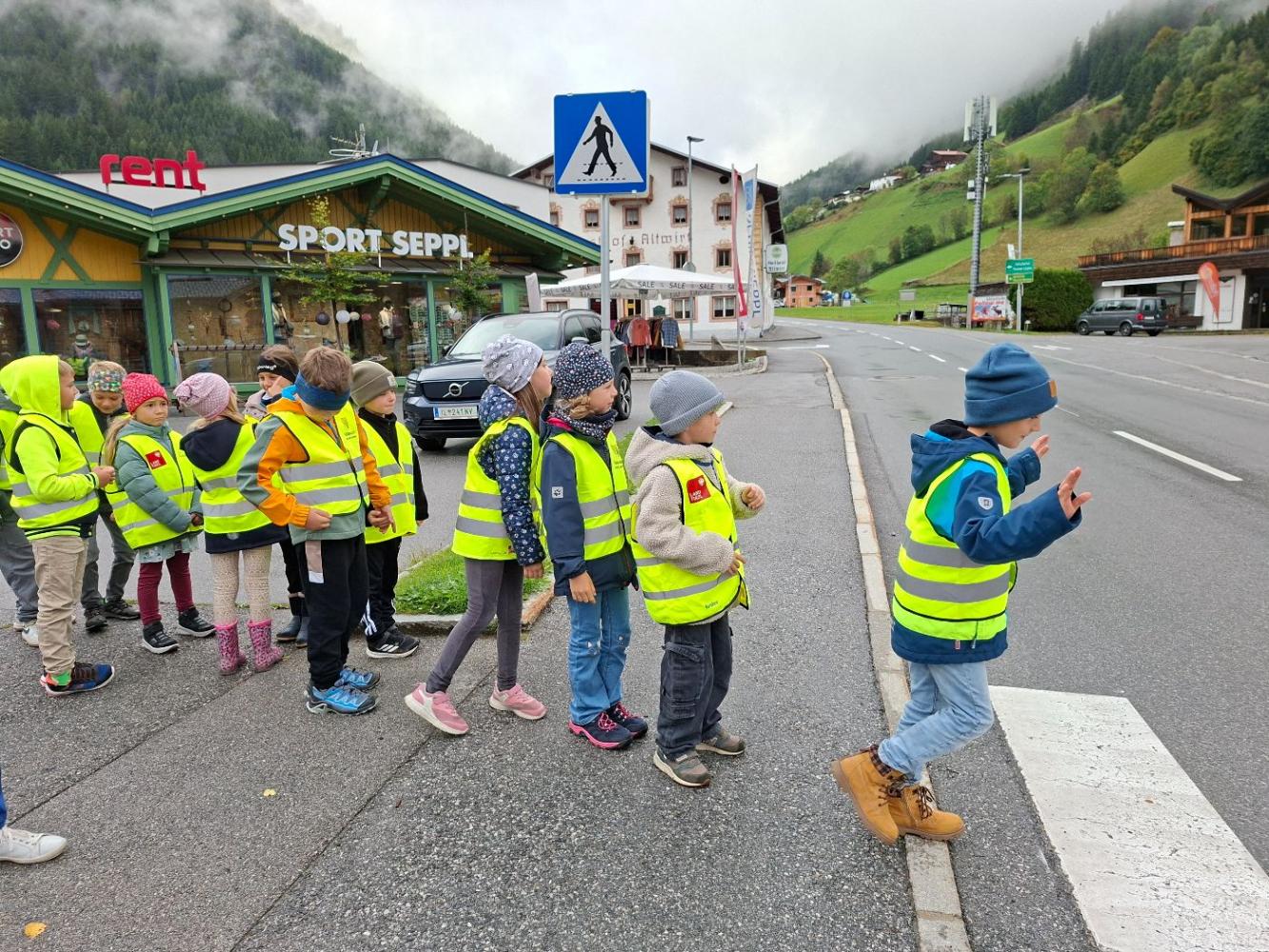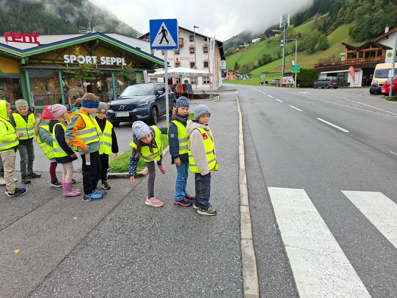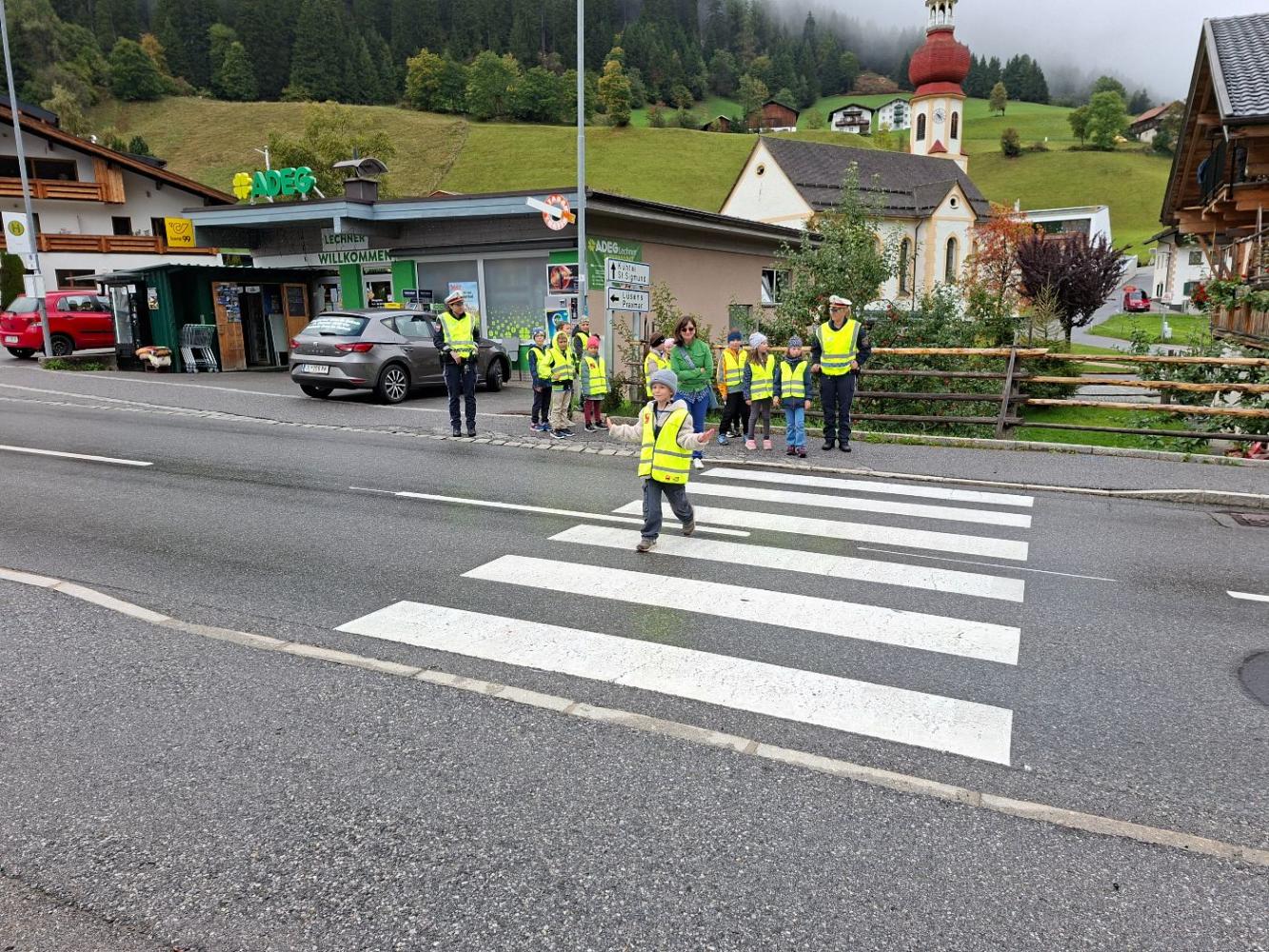 Danach wurde auch noch fleißig bei unserem Schutzweg im Dorf das richtige Überqueren der Straße geübt.