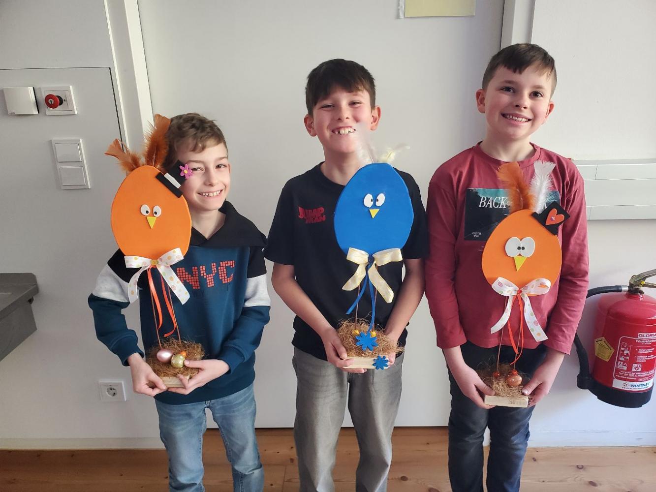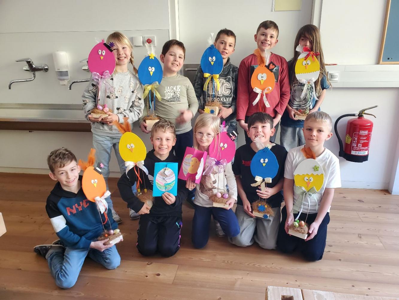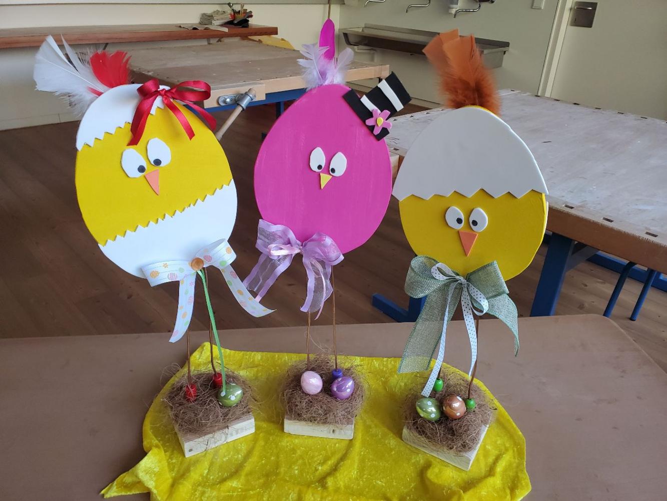 Frohe Ostern! von Carola Kirchmair 06. April 2026 3. und 4. Stufe Dieses Mal sind die Küken zwar auch sehr süß, aber ohne Gepiepse und nicht ganz so echt. :-) In Werken wurden sie mit viel Liebe zum Detail hergestellt. Teils mit Schale - teils mit Hut. Und jedes irgendwie besonders. Stolz wurden sie vor den Osterferien mit nach Hause genommen.