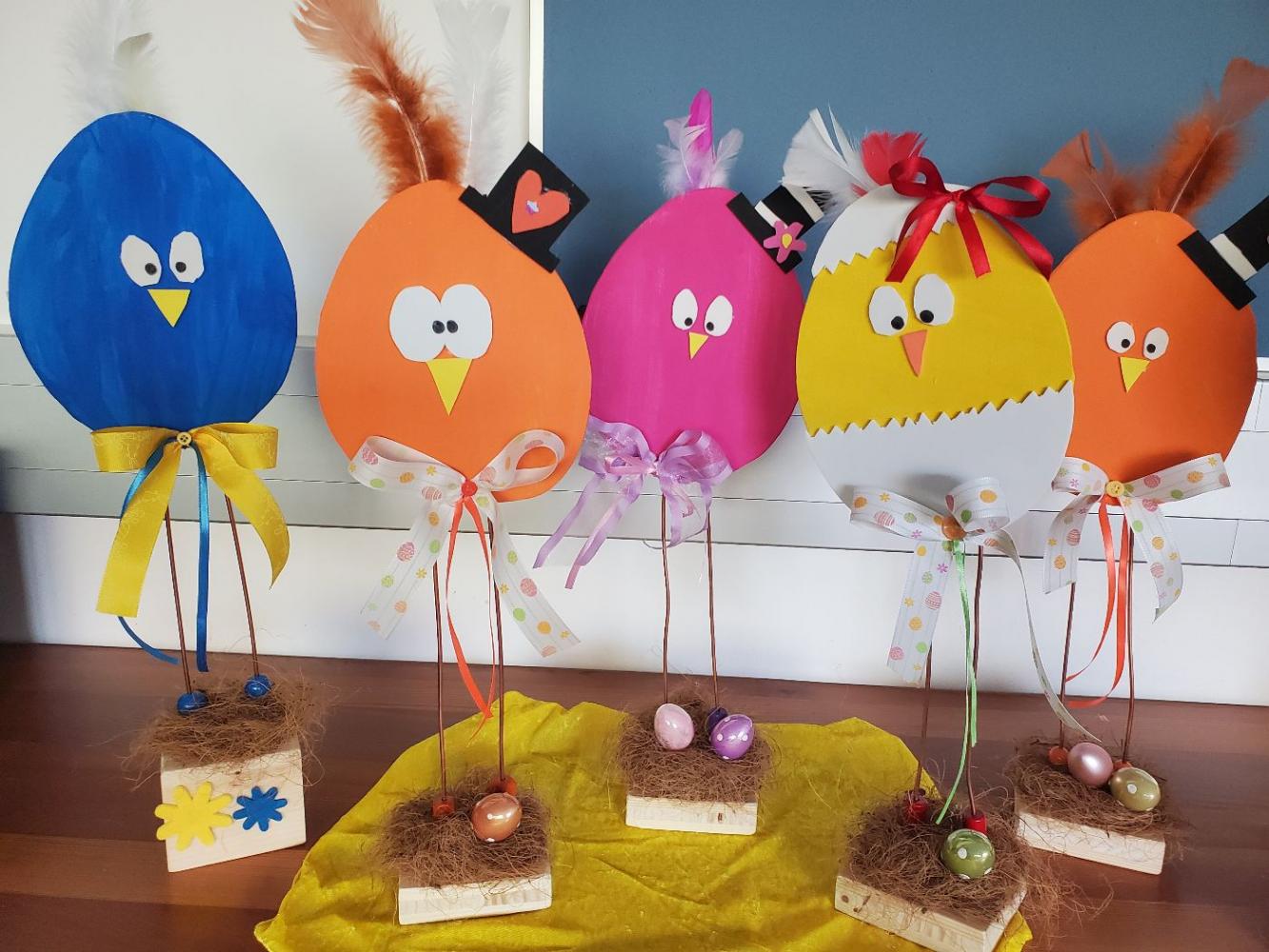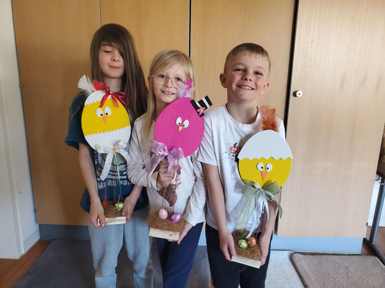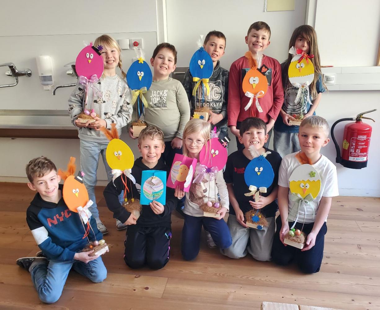 Frohe Ostern! von Carola Kirchmair 06. April 2026 3. und 4. Stufe Dieses Mal sind die Küken zwar auch sehr süß, aber ohne Gepiepse und nicht ganz so echt. :-) In Werken wurden sie mit viel Liebe zum Detail hergestellt. Teils mit Schale - teils mit Hut. Und jedes irgendwie besonders. Stolz wurden sie vor den Osterferien mit nach Hause genommen.
