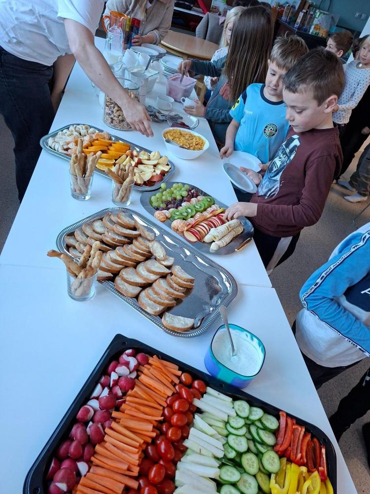 Es hat wie immer gut geschmeckt! Alles, was bei der großen Jause übrig geblieben ist, wurde dann im Laufe des Vormittags von den Kindern noch verspeist. So werden keine Nahrungsmittel weggeworfen, denn das ist allen an der Schule sehr wichtig!
