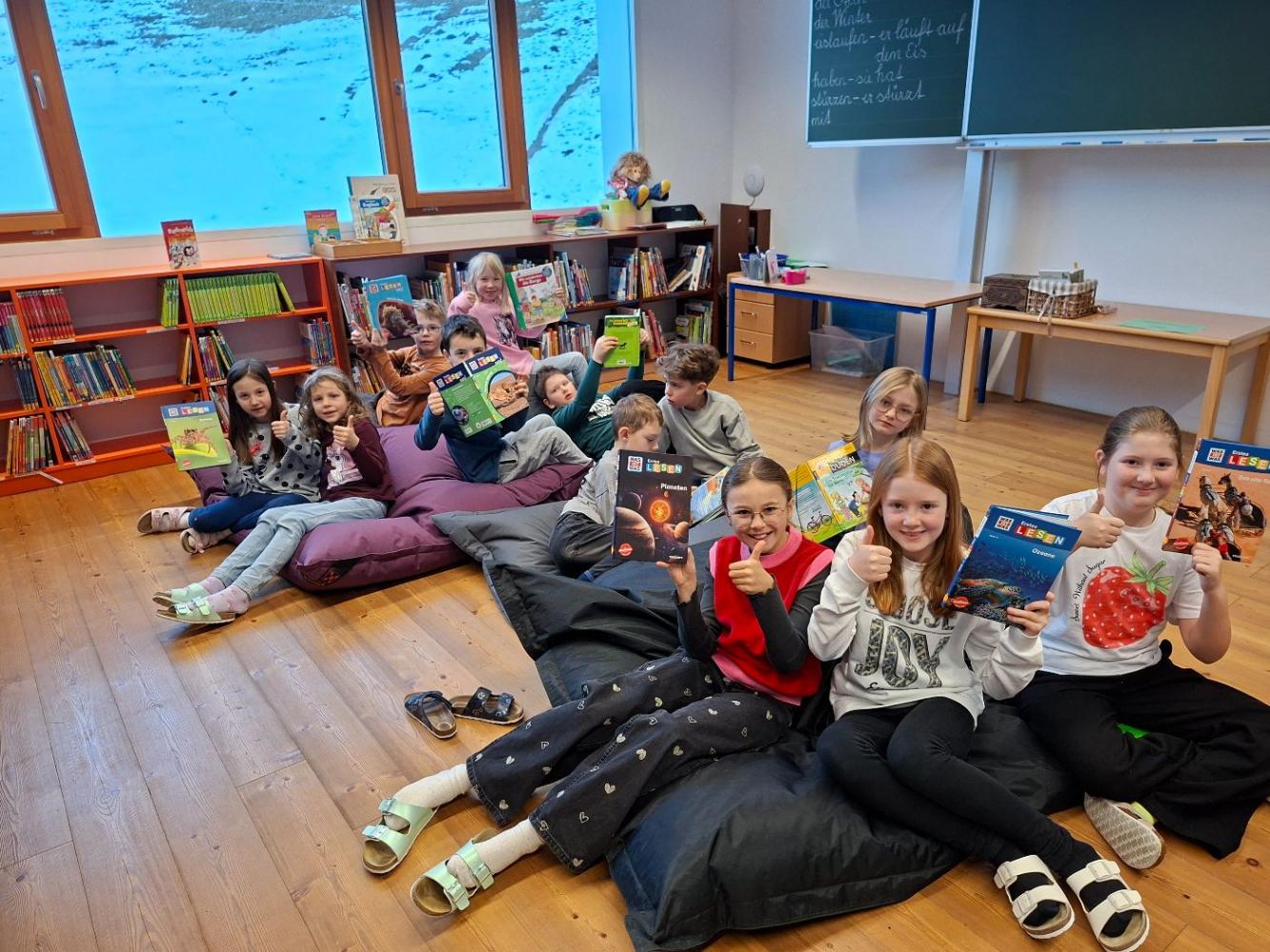 Bei den Büchereistunden werden die Bücher schon fleißig ausgeliehen und auch während der Schulzeit schmökern die Kinder immer wieder darin!