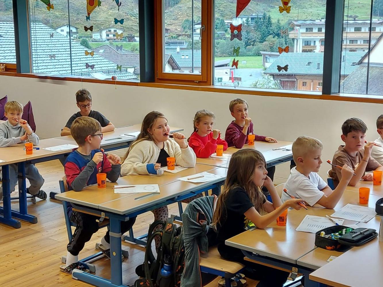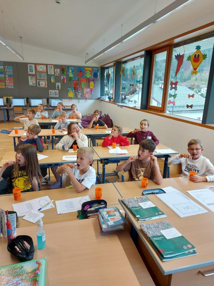 Putz, putz, putz... von Susanne Haselwanter-Entner 13. Oktober 2025 3KL 4KL Auch in diesem Jahr wird uns Evelyn mit ihrem Freund Bürstl besuchen und mit den Kindern allerlei Wissenwertes über unsere Beißerchen lernen.Die Kinder hatten schon bei der ersten Einheit viel Spaß ...und das Zähne putzen durfte natürlich auch nicht vergessen werden!