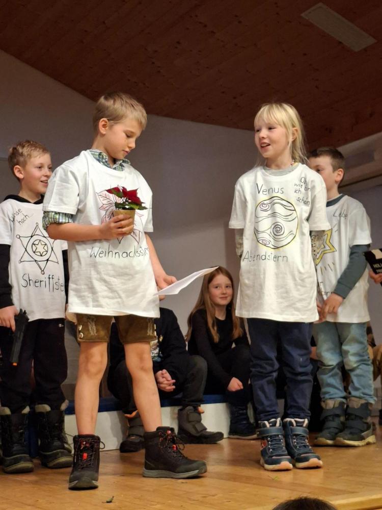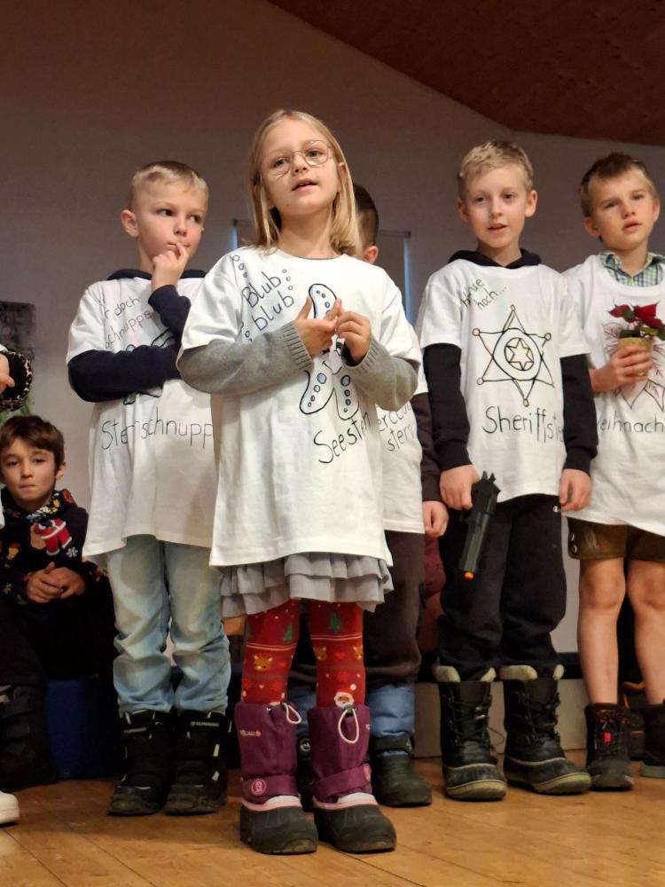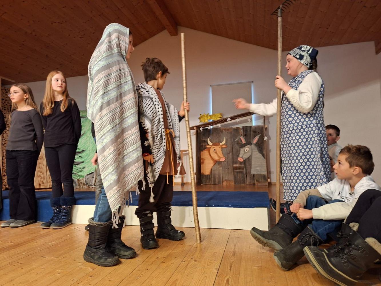 Die Kinder sagen gemeinsam Lieder und es wurden auch Gedicht und kleine Theaterstücke vorgezeigt. So wurden kleine Mäuschen in einem Lebkuchenhaus entdeckt, andere suchten in Bethlehem den Superstar und die Großen zeigten wunderbar, wie es sich damals bei Jesus Geburt zugetragen hat.